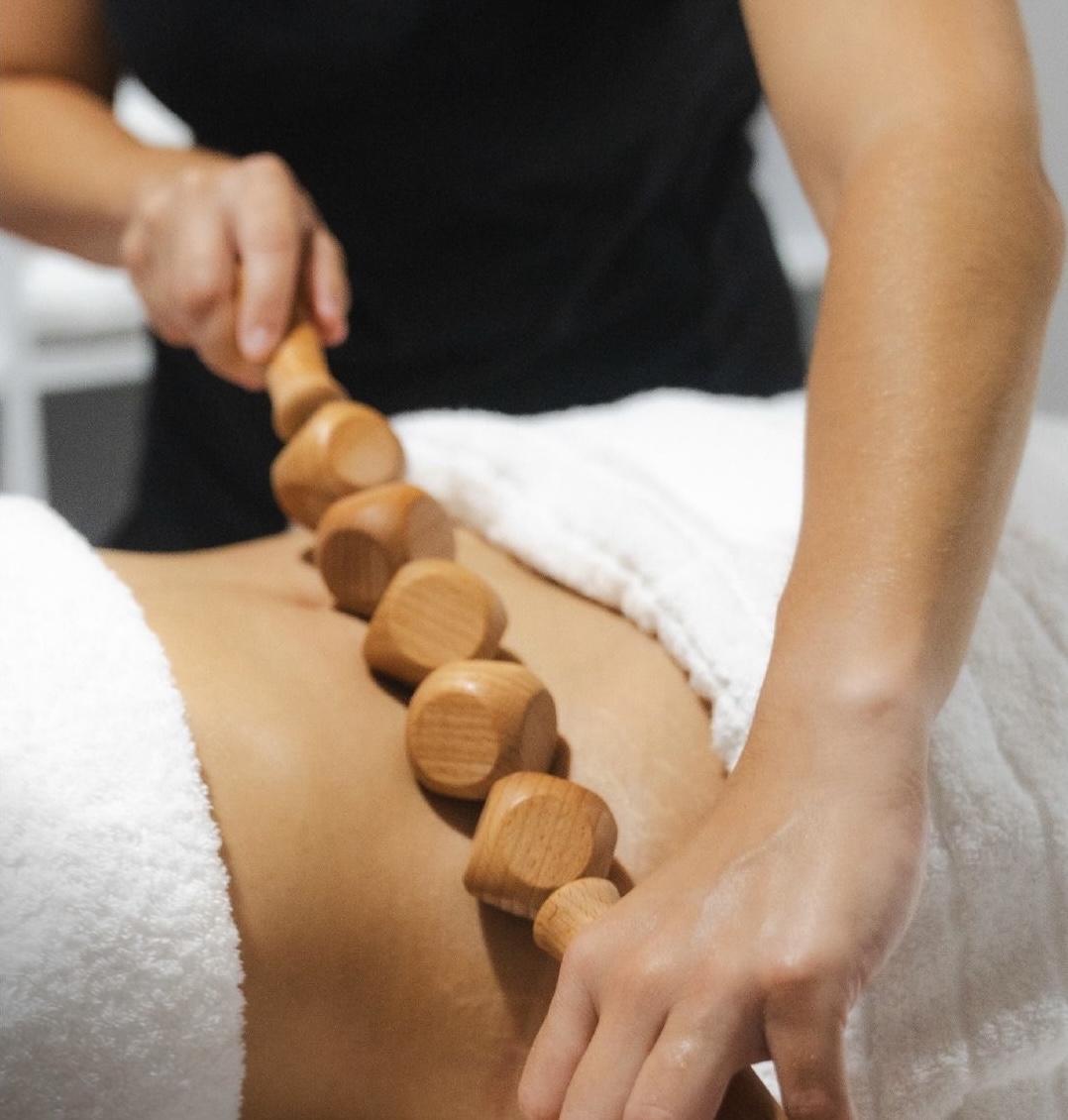 A targeted session that combines manual techniques with specialized wood tools to stimulate circulation, reduce fluid retention, and improve tissue tone. Perfect for areas like the abdomen, thighs, and back where stagnation tends to build.